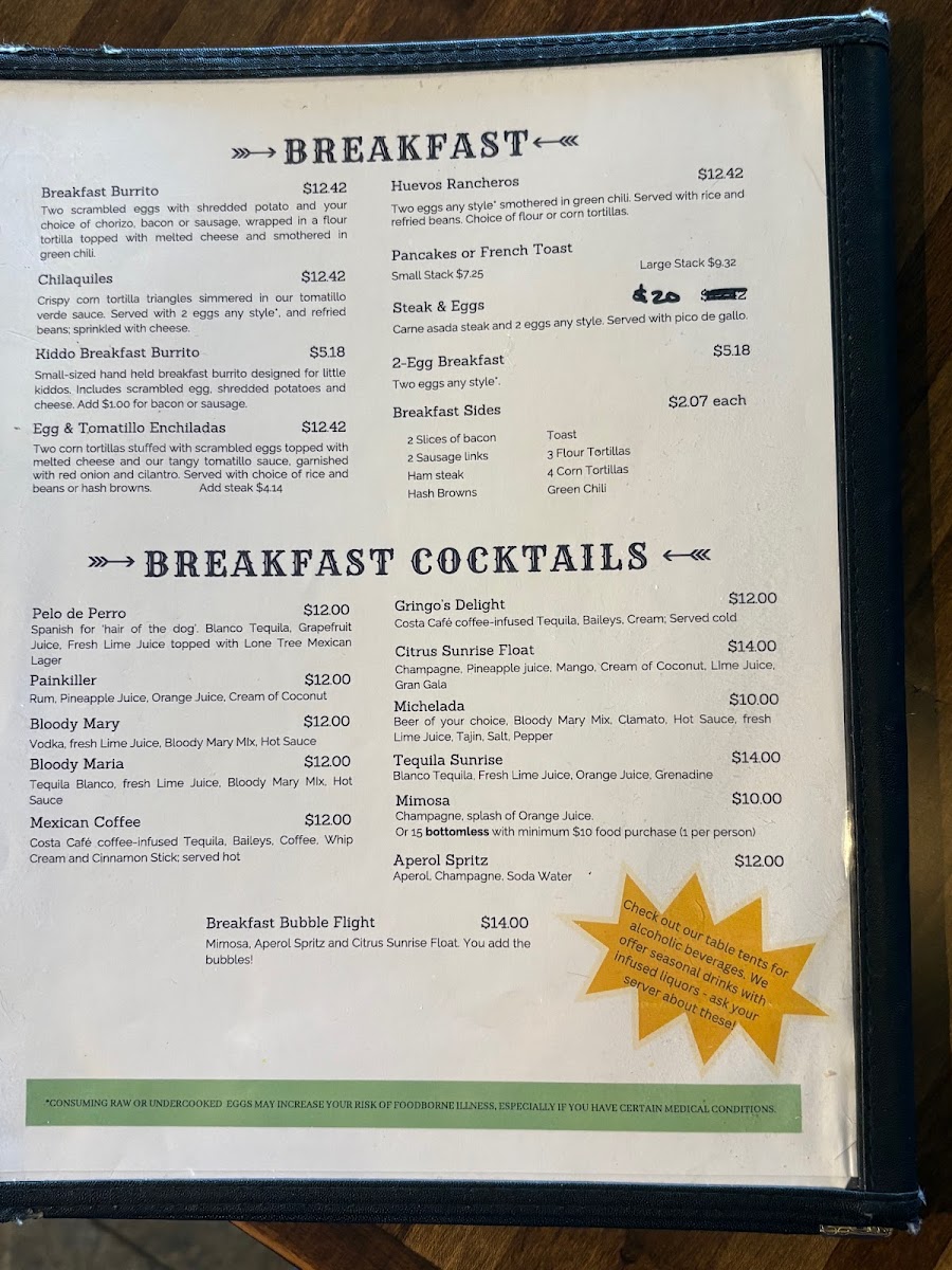 The menu features standout dishes such as the Pregnant Burrito, filled with crispy chile relleno and smothered in signature green chili, and the highly praised chilaquiles. Guests rave about the tacos and burritos, each dish brimming with vibrant, fresh ingredients. Customers also enjoy the spicy margaritas, perfect for pairing with meals.